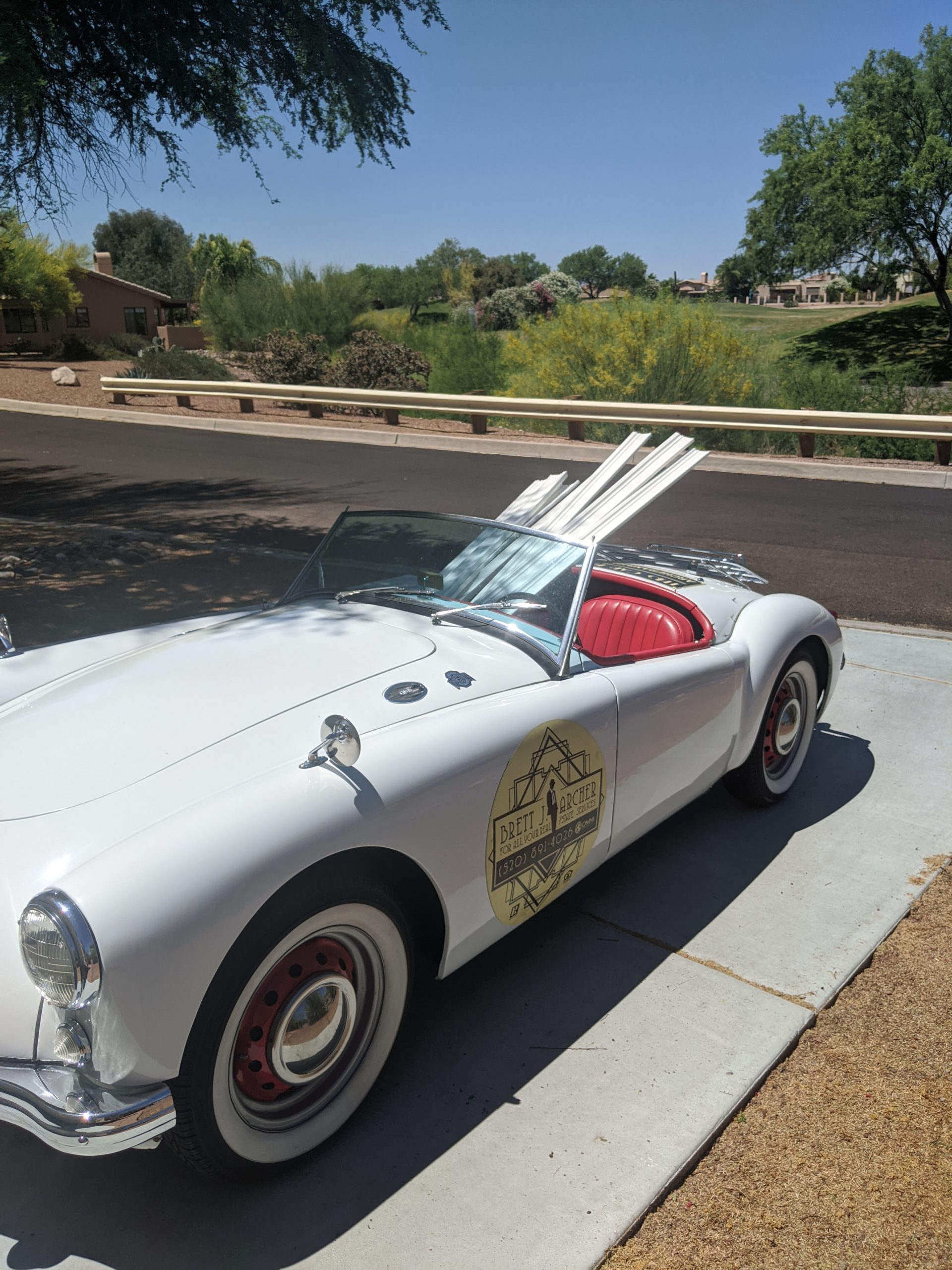 The MGA roadster experience wouldn’t be complete without incorporating my trade. Advertising helps me to meet a few new people and helps me stand out a little more during open houses. I love meeting people when I take pleasure drives in the car. After all, that is the most important part of restoring a nostalgic car: being able to drive it when it is completed.